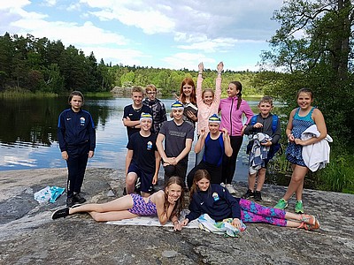 Då var sommarens första läger till ända. Simning varvades med roliga lekar och utomhusaktiviteter. Både styrka, teamwork och skrattmuskler tränades.